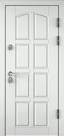 Элитная белая входная дверь с отделкой Экошпон №35 сочетает в себе стиль и надежность, идеально подходя для установки в современных интерьерах. Внешняя и внутренняя отделка из панелей МДФ ПВХ не только придает двери элегантный внешний вид, но и гарантирует долговечность, устойчивость к механическим повреждениям и воздействию внешней среды. Белая отделка позволяет двери вписаться в любые светлые интерьеры, создавая атмосферу чистоты и легкости. Конструкция двери основана на прочном каркасе из профильной трубы, который с толщиной металла 2 мм и ребрами жесткости обеспечивает необходимую прочность и безопасность. Для дополнительной защиты от внешних воздействий предусмотрены блокираторы, а резиновый уплотнитель с двумя контурами гарантирует хорошую герметичность. Несмотря на отсутствие терморазрыва, дверь сохраняет отличные эксплуатационные характеристики, обеспечивая комфорт в использовании. Возможность комбинировать отделку и добавлять опции, такие как замена замков или установка стеклопакетов, делает модель №35 универсальным решением для различных объектов. Элитная белая входная дверь с отделкой Экошпон №35 от производителя: быстрое изготовление и монтаж в Кашире, индивидуальные размеры, широкий выбор материалов и фурнитуры, официальная гарантия до 10 лет.