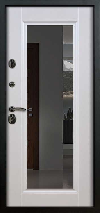 Металлическая входная дверь с зеркалом внутри №1 создана как универсальное решение для дома, квартиры или офиса, где важны и безопасность, и комфорт. Каркас выполнен из прочной профильной трубы с металлическим листом толщиной 2 мм и рёбрами жёсткости, что обеспечивает устойчивость к механическим воздействиям и долгий срок службы. Снаружи дверь покрыта порошковой окраской, стойкой к атмосферным влияниям и царапинам, а изнутри отделана МДФ с ПВХ-покрытием, которое сохраняет свежий вид даже при интенсивной эксплуатации. Встроенное зеркало превращает полотно в практичный элемент интерьера: оно визуально расширяет пространство прихожей и избавляет от лишних предметов мебели. Два контура уплотнителей защищают от пыли и сквозняков, а блокираторы усиливают общую надёжность конструкции. Модель не оснащена терморазрывом, зато отличается продуманным балансом практичности и доступной цены, оставаясь удобным вариантом для повседневного использования. Металлическая входная дверь с зеркалом внутри №1 от производителя: быстрое изготовление и монтаж в Кашире, индивидуальные размеры, широкий выбор материалов и фурнитуры, официальная гарантия до 10 лет.