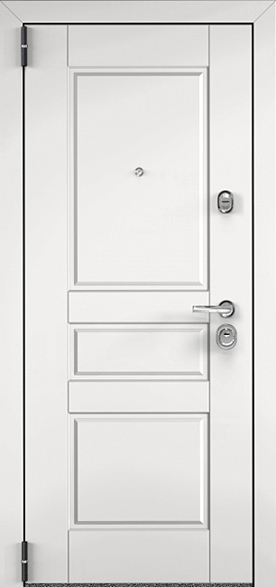 Белая металлическая дверь входная для дома №33 выделяется своим свежим и современным обликом. Универсальный белый цвет делает её уместной как в частном коттедже, так и в квартире или офисе, визуально добавляя простора и подчеркивая аккуратность фасада или интерьера. Конструкция двери основана на стальном листе толщиной 2 мм и усилена профильными трубами, что гарантирует надежность и устойчивость к нагрузкам. Важная особенность модели — наличие терморазрыва в полотне и коробке: благодаря этому дверь не промерзает в зимний период, исключается конденсат и сохраняется комфорт внутри помещения. Внешняя и внутренняя отделка выполнена из МДФ с ПВХ-покрытием, которое защищает поверхность от влаги и механических повреждений, сохраняя первозданный вид надолго. Два контура уплотнителя обеспечивают герметичность и дополнительную защиту от сквозняков. Эта дверь удачно сочетает эстетику и практичность, создавая надежный вход в любое жилище. Белая металлическая дверь входная для дома №33 от производителя: быстрое изготовление и монтаж в Кашире, индивидуальные размеры, широкий выбор материалов и фурнитуры, официальная гарантия до 10 лет.