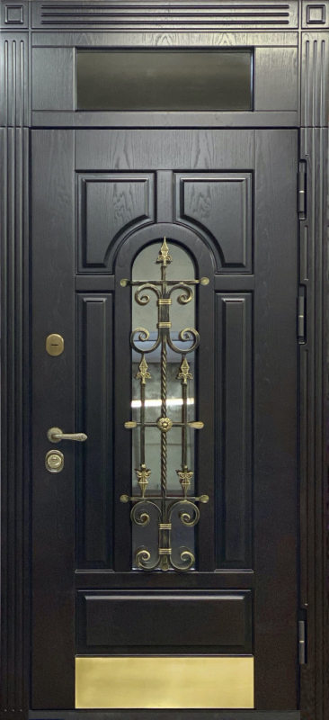 Парадная металлическая дверь с фрамугой №1 — это элегантное и надежное решение для вашего входа. Внешняя и внутренняя отделка из МДФ придает двери не только привлекательный вид, но и устойчивость к внешним повреждениям, что гарантирует долговечность и сохранение первоначального вида. Каркас из профильной трубы и металл толщиной 2 мм обеспечивают прочность и надежность конструкции. Наличие фрамуги позволяет пропускать больше света, создавая ощущение простора. Для дополнительной безопасности предусмотрены блокираторы и замки с тремя ригелями от надежных производителей, таких как Просам и Мосрентген. Варианты отделки, возможность добавления стеклопакетов, зеркала или кованых элементов позволяют адаптировать дверь под любой стиль интерьера. Парадная металлическая дверь с фрамугой №1 от производителя: быстрое изготовление и монтаж в Кашире, индивидуальные размеры, широкий выбор материалов и фурнитуры, официальная гарантия до 10 лет.