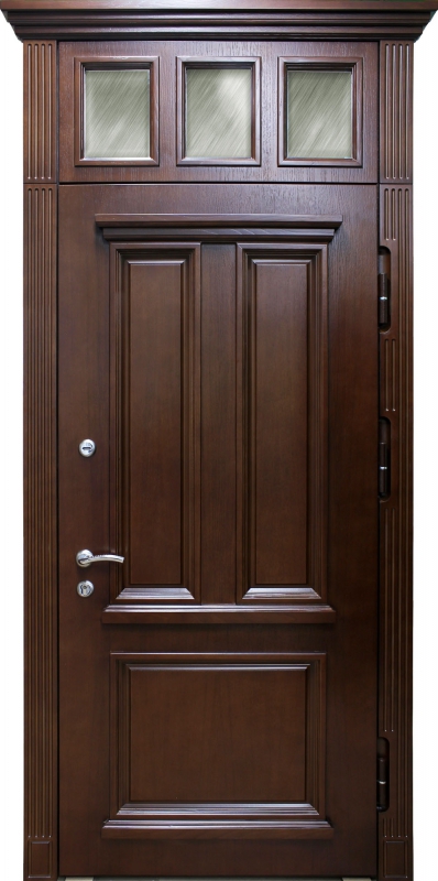 Дверь с сувальдным замком и фрамугой №34 идеально сочетает в себе стиль и надежность. Панель из натурального дерева, использованная как для внешней, так и для внутренней отделки, придает двери благородный и элегантный вид, делая её отличным выбором для помещений с классическим или современным интерьером. Каркас двери выполнен из профильной трубы 50х25 мм и усилен ребрами жесткости, что гарантирует прочность конструкции. Замки от производителей "Просам" и "Мосрентген" с тремя ригелями обеспечивают высокий уровень безопасности. Дверь оснащена уплотнителями с двумя контурами, что гарантирует отличную герметичность, а возможность замены замков и добавления кованых элементов делает её адаптируемой под любые требования. Кроме того, дверь можно дополнить зеркалом, стеклопакетом или видеодомофоном для еще большего комфорта. Входная дверь с сувальдным замком и фрамугой №34 от производителя: быстрое изготовление и монтаж в Кашире, индивидуальные размеры, широкий выбор материалов и фурнитуры, официальная гарантия до 10 лет.
