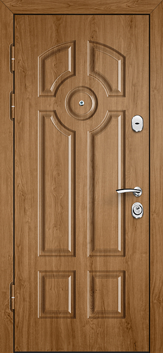 Филёнчатая отделка всегда придаёт дверному полотну особый шарм, создавая эффект глубины и аккуратного рельефа. Входная дверь МДФ с внешней панелью под филёнку №537 универсальна и одинаково хорошо смотрится на фасаде частного дома, в офисе или в квартире. Отделка из МДФ-плиты устойчива к мелким повреждениям, не выгорает и сохраняет аккуратный вид при ежедневной эксплуатации, а при необходимости легко комбинируется с другими декоративными элементами. В основе конструкции — каркас из профильной трубы, лист стали толщиной 2 мм и рёбра жёсткости, обеспечивающие надёжность и жёсткость всей системы. Для удобства и безопасности предусмотрены два замка: сувальдный Просам и цилиндровый Мосрентген. Два контура уплотнения повышают комфорт эксплуатации, а при желании дверь можно дополнить зеркалом, стеклопакетом или коваными вставками, сделав её не только прочной, но и выразительной частью интерьера. Входная дверь МДФ и внешней панелью под филенку №537 от производителя: быстрое изготовление и монтаж в Кашире, индивидуальные размеры, широкий выбор материалов и фурнитуры, официальная гарантия до 10 лет.