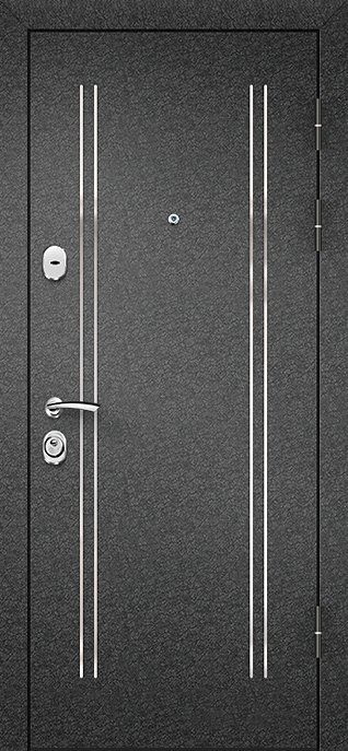 Дверь металлическая в порошке №59 — надежное решение для квартир, офисов и подъездов, где требуется прочная конструкция и аккуратный внешний вид. Снаружи используется молотковое напыление, которое не боится механических повреждений и долго сохраняет насыщенный цвет, а внутренняя поверхность отделана ламинатом, создающим ощущение уюта и подчеркивающим практичность модели. Каркас собран из профильной трубы 50х25 мм, усилен ребрами жесткости и листом стали толщиной 2 мм, что придает двери устойчивость к силовым нагрузкам. Дополнительную защиту обеспечивают два замка: верхний сувальдный «Просам» и нижний цилиндровый «Мосрентген», оба с тремя ригелями. Два контура резинового уплотнения помогают справляться со сквозняками, а при желании дверь можно укомплектовать шумо- и теплоизоляцией. Модель №59 легко адаптируется под любые требования: возможна комбинация отделок, установка зеркала, стеклопакета или декоративной ковки. Дверь металлическая в порошке №59 от производителя: быстрое изготовление и монтаж в Кашире, индивидуальные размеры, широкий выбор материалов и фурнитуры, официальная гарантия до 10 лет.