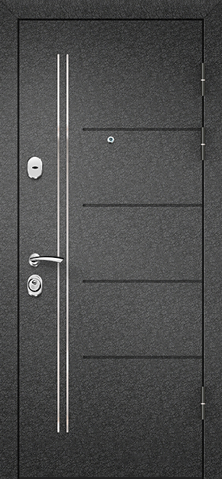 Порошковая входная дверь №65 объединяет прочность металла и практичную отделку, делая её универсальным выбором для квартиры, офиса или подъезда. Каркас и полотно собраны из профильной трубы, усиленной ребрами жесткости, а стальной лист толщиной 2 мм придает конструкции дополнительную устойчивость к нагрузкам. Снаружи нанесено молотковое напыление — покрытие, стойкое к царапинам и атмосферным воздействиям, благодаря чему дверь долго сохраняет аккуратный внешний вид. Внутренняя сторона оформлена ламинированными панелями, создающими ощущение тепла и комфорта. Два резиновых контура уплотнения помогают отсечь сквозняки и пыль, при необходимости можно добавить шумо- и теплоизоляцию. Модель №65 сочетает надежность и лаконичность, а её внешний вид гармонично впишется как в жилое пространство, так и в деловую среду. Порошковая входная дверь №65 от производителя: быстрое изготовление и монтаж в Кашире, индивидуальные размеры, широкий выбор материалов и фурнитуры, официальная гарантия до 10 лет.
