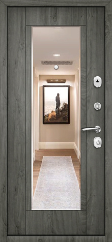 Для тех, кто ценит не только надёжность, но и практичность, металлическая входная дверь с зеркалом становится отличным решением. Она органично впишется как в частный дом, так и в квартиру или офис, позволяя сэкономить пространство и добавить функциональности интерьеру. В основе конструкции — прочный каркас из профильной трубы и стальной лист толщиной 2 мм, что обеспечивает серьёзную защиту от взлома и долговечность эксплуатации. Наружное покрытие выполнено методом порошкового термонапыления, устойчивого к механическим повреждениям и погодным условиям, а изнутри используется МДФ с ПВХ-плёнкой, сохраняющей привлекательный вид долгие годы. Железная дверь входная с зеркалом №75 дополнена двумя замками российского производства — сувальдным и цилиндровым, что повышает уровень безопасности. Возможность менять отделку, устанавливать умные замки или видеодомофон делает модель универсальной и адаптируемой под любые запросы. Железная дверь входная с зеркалом №75 от производителя: быстрое изготовление и монтаж в Кашире, индивидуальные размеры, широкий выбор материалов и фурнитуры, официальная гарантия до 10 лет.