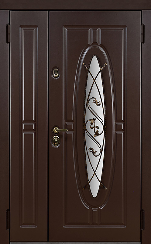 Двойная уличная дверь с овальным стеклом и художественной ковкой №14 — это уникальное сочетание функциональности и эстетики. Панели МДФ с ПВХ-покрытием, используемые как для внешней, так и для внутренней отделки, обладают высокой стойкостью к внешним воздействиям, сохраняя свой внешний вид на долгие годы. Внешний декор в виде художественной ковки придаёт двери особый шарм, подчеркивая её стиль и индивидуальность. Двойная уличная дверь с овальным стеклом и художественной ковкой №14 от производителя: быстрое изготовление и монтаж в Кашире, индивидуальные размеры, широкий выбор материалов и фурнитуры, официальная гарантия до 10 лет.