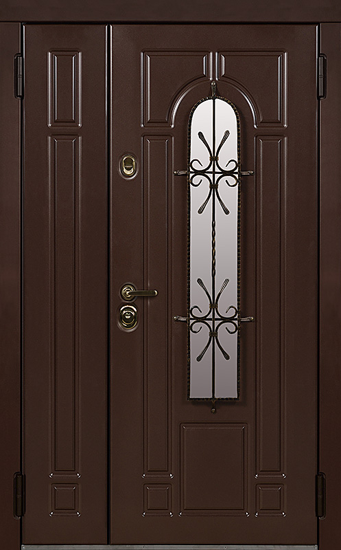 Эта металлическая двухстворчатая дверь с арочным стеклопакетом №15 представляет собой идеальный баланс между эстетикой и прочностью. Арочное стекло добавляет в её дизайн утончённость, а ковка в декоре придаёт изысканный, но в то же время крепкий и надёжный вид. Плита МДФ, используемая как для внешней, так и для внутренней отделки, не только сохраняет прекрасный внешний вид, но и устойчива к механическим повреждениям. Металлическая двухстворчатая дверь с арочным стеклопакетом №15 от производителя: быстрое изготовление и монтаж в Кашире, индивидуальные размеры, широкий выбор материалов и фурнитуры, официальная гарантия до 10 лет.