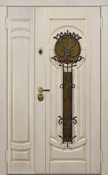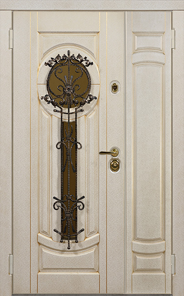 Двухстворчатая парадная дверь с ковкой и стеклом белая №30 — это сочетание красоты и надёжности. Конструкция из профильной трубы 50х25 мм и металлического листа толщиной 2 мм обеспечивает долговечность и стойкость к внешним воздействиям. Элементы ковки придают двери изысканный вид, а стеклопакет позволяет создать атмосферу лёгкости и прозрачности. Внешняя и внутренняя отделка выполнены из плиты МДФ, что делает дверь не только привлекательной, но и устойчивой к механическим повреждениям. Для дополнительной герметичности используются уплотнители с двумя контурами, а блокираторы обеспечат безопасность. Вариативность размеров и возможность добавления дополнительных опций, таких как шумо- и теплоизоляция, делают эту модель универсальной для установки в любом интерьере. Двухстворчатая парадная дверь с ковкой и стеклом белая №30 от производителя: быстрое изготовление и монтаж в Кашире, индивидуальные размеры, широкий выбор материалов и фурнитуры, официальная гарантия до 10 лет.