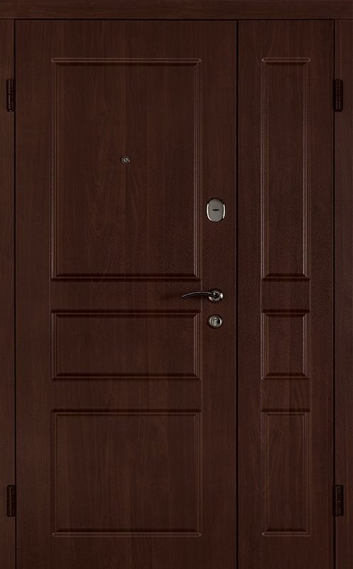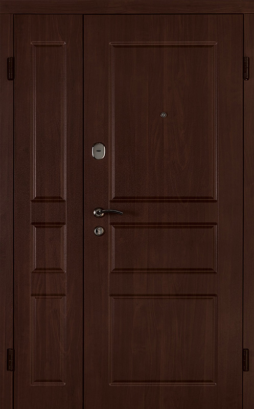 Коричневая входная полуторная дверь с филенчатой створкой №4 – это надежное и стильное решение для вашего дома или офиса. Внешняя и внутренняя отделка из МДФ с ПВХ обеспечивает долговечность и устойчивость к повреждениям, сохраняя при этом элегантный внешний вид. Прочные материалы конструкции, такие как профильная труба 50х25 мм и лист металла толщиной 2 мм, гарантируют стабильность и безопасность. Ребра жесткости из профильных труб 40х25 мм усиливают дверное полотно, а уплотнение с двумя контурами надежно защищает от внешних факторов. Несмотря на отсутствие терморазрыва, в двери реализованы терморазрывы в коробке и полотне, что помогает улучшить теплоизоляцию. Возможность выбора дополнительных опций, таких как шумоизоляция, делает эту дверь универсальной для различных условий эксплуатации. Коричневая входная полуторная дверь с филенчатой створкой №4 от производителя: быстрое изготовление и монтаж в Кашире, индивидуальные размеры, широкий выбор материалов и фурнитуры, официальная гарантия до 10 лет.