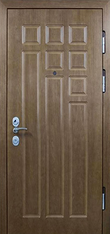 Дверь наружная с покрытием под дерево №3 — это стильное и надежное решение для вашего частного дома, квартиры или офиса. Конструкция двери включает прочный каркас из профильной трубы и металл толщиной 2 мм, что гарантирует долговечность и защиту от внешних воздействий. Внешняя и внутренняя отделка выполнены из плиты МДФ, что придает двери эстетичный вид и устойчивость к механическим повреждениям. Декор в виде зеркала подчеркивает её элегантность, а блокираторы и высококачественные замки (Просам и Мосрентген) обеспечивают высокий уровень безопасности. Дверь также оснащена двумя контурами уплотнения, что способствует хорошей изоляции. Возможность добавить стеклопакет, кованые элементы или видеодомофон делает этот продукт еще более универсальным и практичным для различных типов объектов. Дверь наружная с покрытием под дерево №3 от производителя: быстрое изготовление и монтаж в Кашире, индивидуальные размеры, широкий выбор материалов и фурнитуры, официальная гарантия до 10 лет.