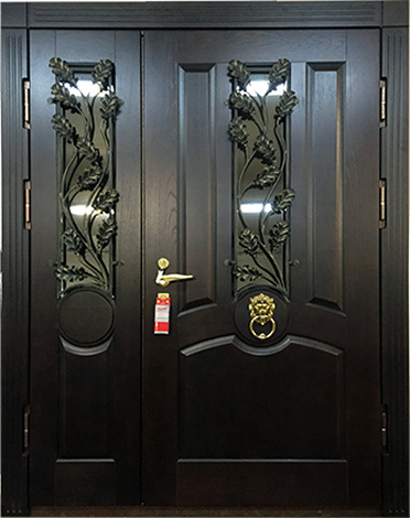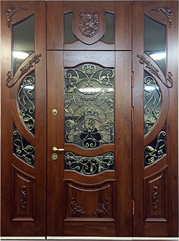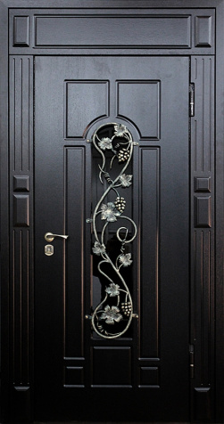 Входная металлическая дверь с порошковым покрытием стеклом и ковкой в частный дом №27