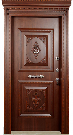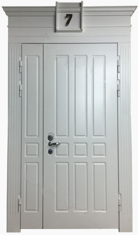 Утепленная дверь на усиленном коробе для загородного дома с колоннами №34