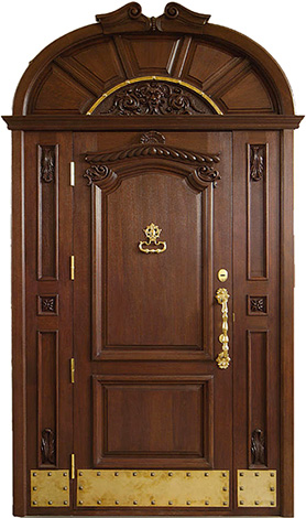 Красивая шпонированная дверь с надежной фурнитурой и ковкой "лоза" №33