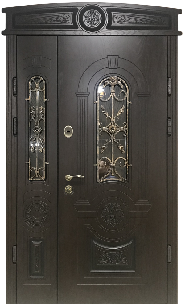 Красивая шпонированная дверь с надежной фурнитурой и ковкой "лоза" №33