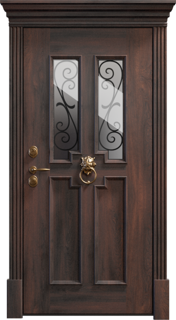 Дверь с надежной фурнитурой и коваными элементами на стекле №18
