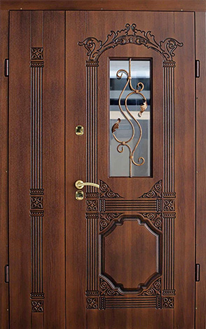 Морозостойкая дверь в широкий проем с глухим полотном стеклом и ковкой №30