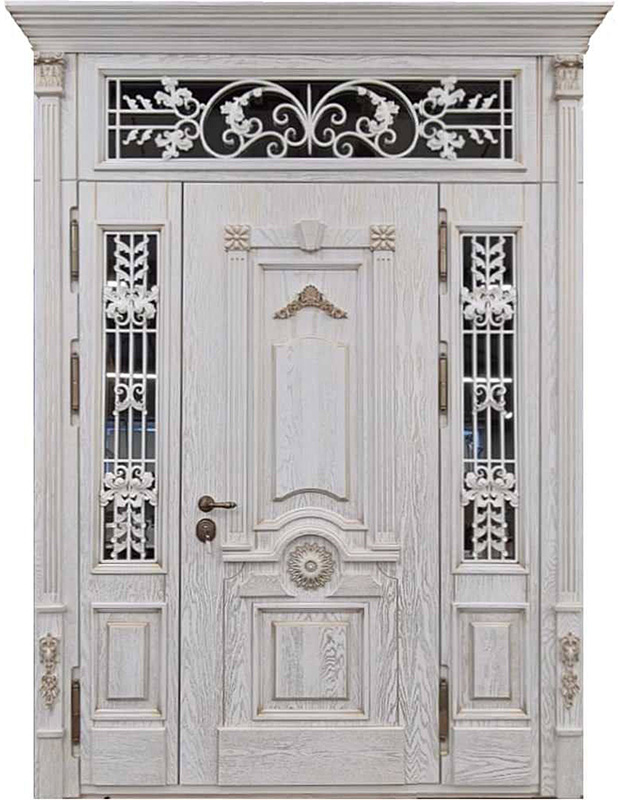 Эксклюзивная глянцевая дверь в частный дом с нестандартной фрезеровкой №24