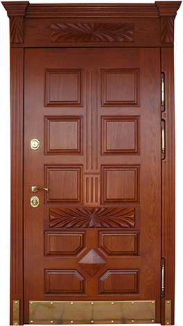 Эксклюзивная высокая входная дверь с железным отбойником №36 — это образец элегантности и функциональности, который идеально впишется в любой частный дом или коттедж. Изготовленная из массива дерева, она будет долго сохранять свой привлекательный внешний вид и устойчивость к внешним воздействиям. Прочная конструкция из профильных труб и листа металла толщиной 2 мм, усиленная ребрами жесткости, гарантирует надежность и долговечность. Терморазрыв в коробке и полотне помогает минимизировать теплопотери и защищает от перепадов температуры. Дверь оснащена высококачественными замками, что обеспечивает высокий уровень безопасности. Железный отбойник добавляет двери не только дополнительную защиту, но и стильный элемент дизайна. Эксклюзивная высокая входная дверь с железным отбойником №36 от производителя: быстрое изготовление и монтаж в Кашире, индивидуальные размеры, широкий выбор материалов и фурнитуры, официальная гарантия до 10 лет.