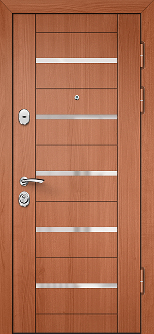 Современная входная дверь с цилиндровым замком №21 сочетает строгую надежность металлической конструкции и аккуратный внешний вид. Каркас из профильной трубы и лист стали толщиной 2 мм образуют прочный щит, усиленный ребрами жесткости и блокираторами. Накладки из МДФ придают полотну более «домашний» облик: материал не только эстетичен, но и практичен — ПВХ-покрытие стойко переносит небольшие повреждения и сохраняет первозданный вид долгие годы. Такая дверь подходит для квартиры, офиса или частного дома, где важно совместить защиту и стиль. Цилиндровый замок обеспечивает удобное и надежное закрывание, а два контура резинового уплотнителя защищают от сквозняков и лишнего шума. При желании возможно дополнить конструкцию тепло- и шумоизоляцией или установить замки другого типа, включая современные электронные системы. Современная входная дверь с цилиндровым замком №21 от производителя: быстрое изготовление и монтаж в Кашире, индивидуальные размеры, широкий выбор материалов и фурнитуры, официальная гарантия до 10 лет.